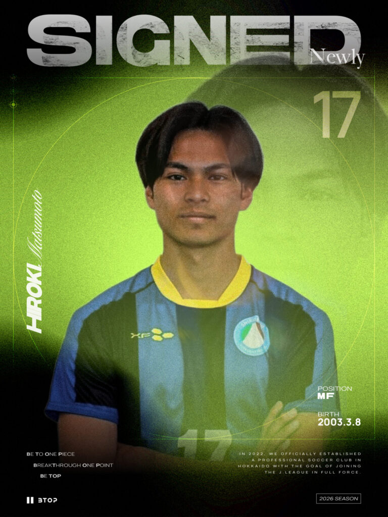 この度、松本 尋暉(Hiroki Matsumoto)選手がBTOP北海道へ加入することになりましたので、お知らせいたします。